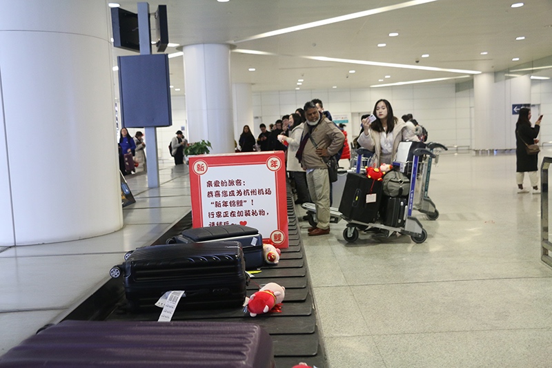 1月1日,83件系著豬年玩偶和新年賀卡的托運行李驚喜亮相T3航站樓B10行李轉盤。這是航站區中心組織策劃的"好運首開,錦鯉呈祥"新年活動,在地勤公司行李部的協助配合下,從廣州飛抵本場的CZ3803航班上的83件托運行李主人成為了新年"幸運錦鯉"。驚喜活動讓現場旅客興奮不已,紛紛拿出手機記錄下感動的一幕,開啟了2019年"溫暖航站樓"的序幕。(航站區中心 朱偉 任嘉婷)