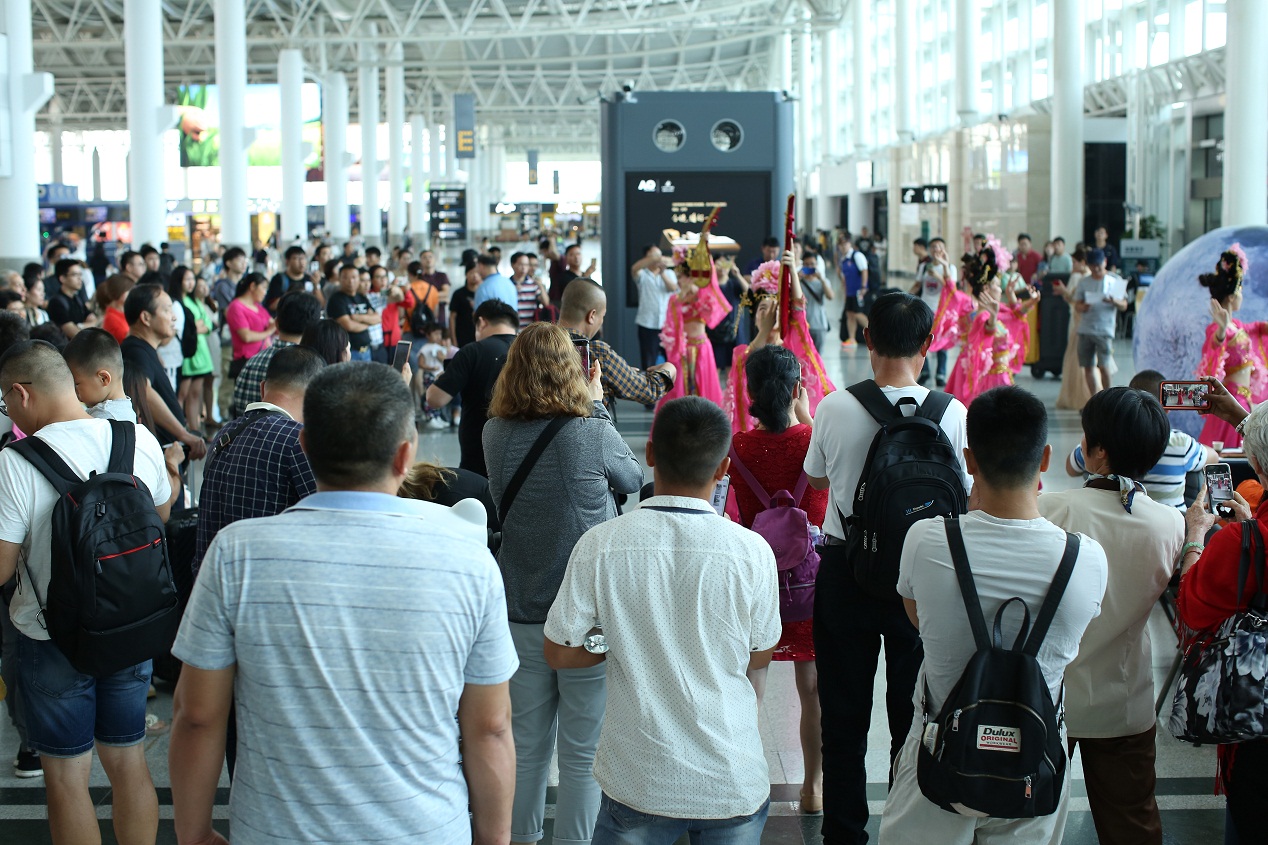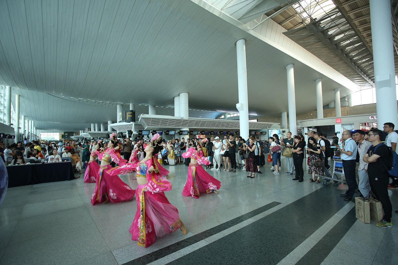 9月13日上午,在T1航站樓9號門旁開展了“情系空港,愛滿中秋”文化活動。活動圍繞嫦娥奔月、月圓團聚等中秋文化元素,以回歸傳統、弘揚民俗為立足點,為旅客呈現了精彩的中秋歌舞表演,并與旅客進行了“彩繪月兔”、“猜燈謎”等互動活動。航站樓內洋溢著傳統節慶氛圍,為旅客的中秋旅途增加了濃厚的文化體驗。