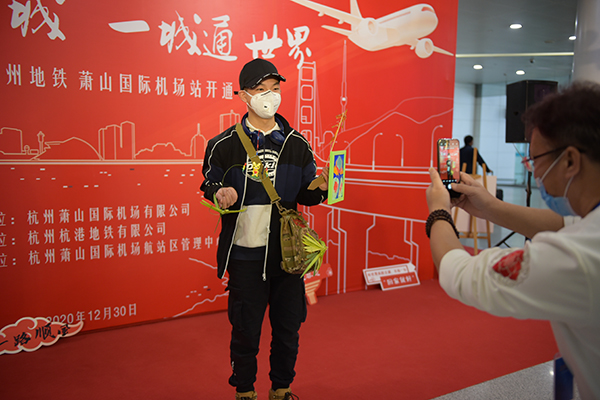 當日,為慶祝杭州機場正式開通地鐵,航站區中心在T3航站樓內開展“一線連全城 一城通世界”文化主題活動。活動邀請了“糖畫”“草編”“捏面人兒”“水印畫”等四位杭州非遺傳承人到現場與旅客進行互動,傳授制作技巧,贈送手工藝品,讓旅客感受杭州地域文化。首位搭乘地鐵前來機場的旅客被邀請至活動現場,并獲得精美禮品。此外,活動現場還設置了拍照打卡背景墻。(李俊杰 任嘉婷)