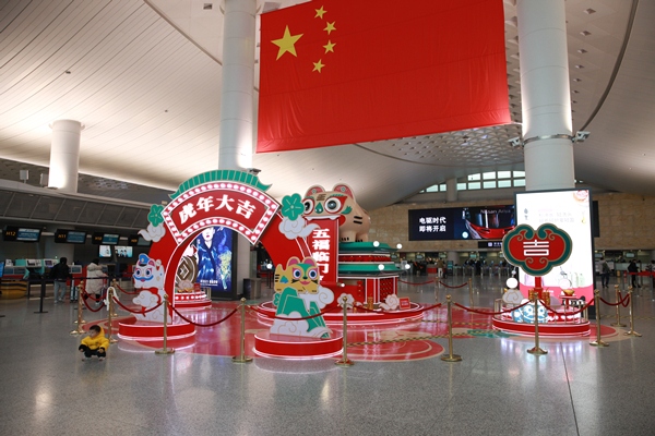 此外,為營造新春節日氛圍,航站區中心在出發大廳G值機島設置了虎年新春主題景觀,并結合杭州地域文化特色、亞運主題元素,在7號門、11號門等區域用綠化景觀打造“三潭映月”及亞運主題特色景觀,旅客紛紛打卡留念。